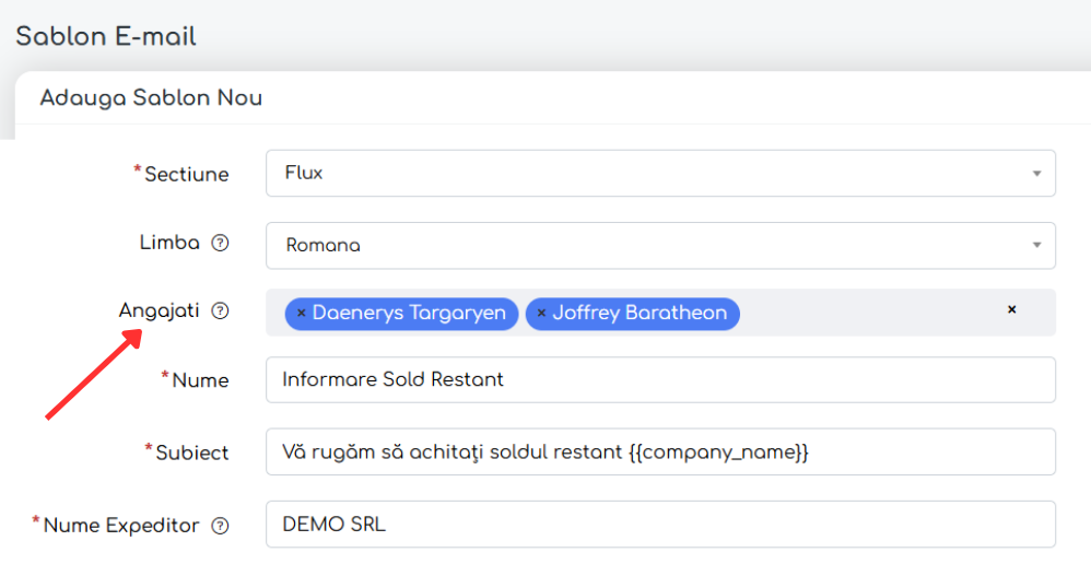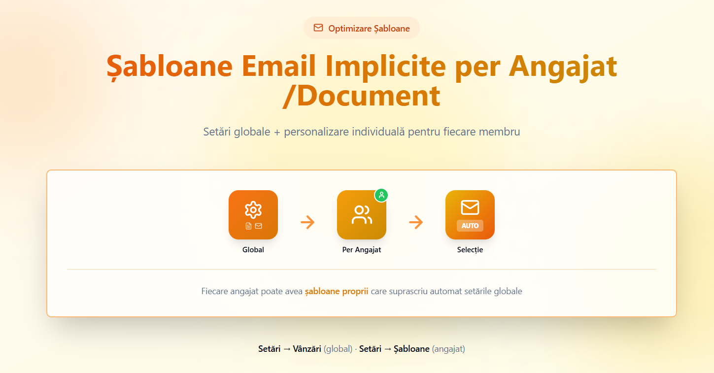 Fiecare angajat nu mai trebuie să selecteze manual șablonul la fiecare trimitere — sistemul îl aplică automat în funcție asocierea configurată.