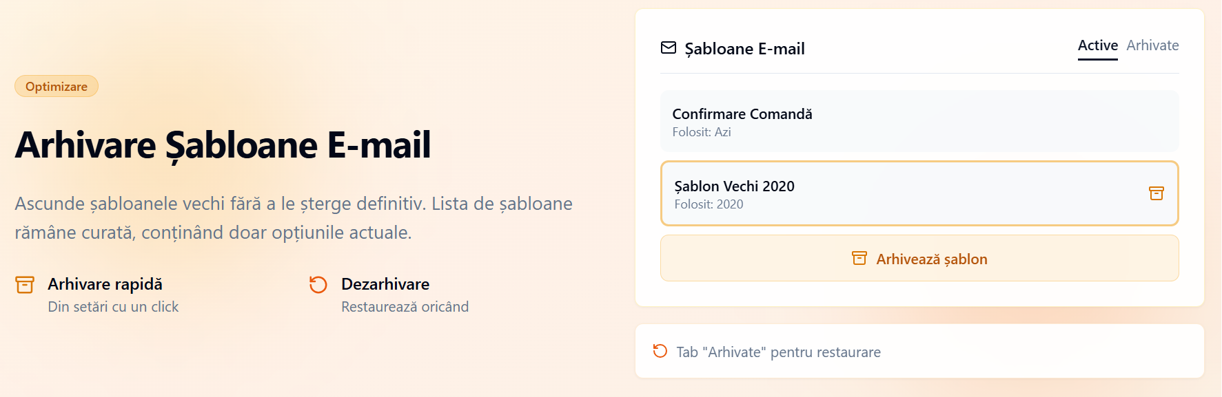 Optimizare: Arhivarea Șabloanelor de E-mail