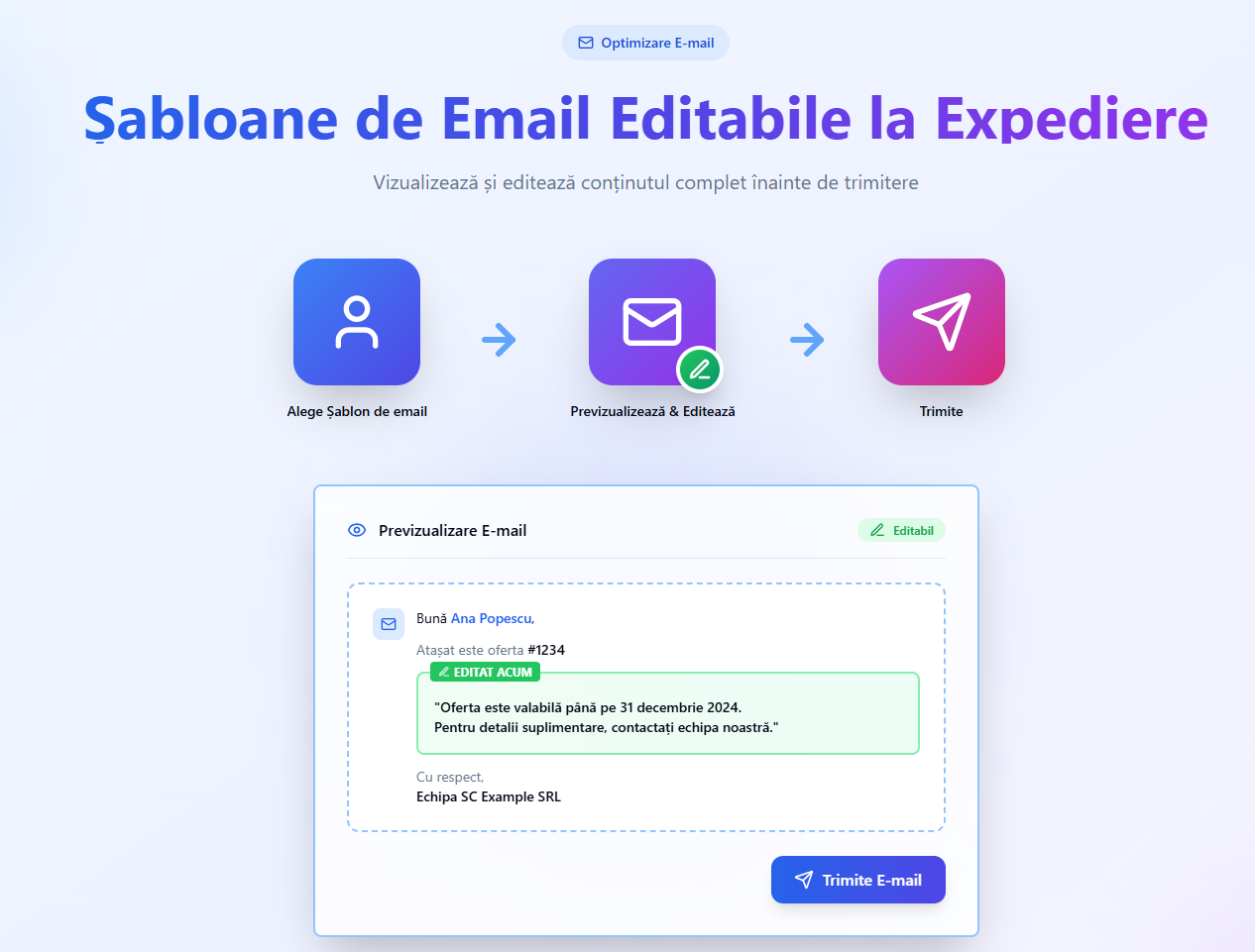 Optimizare: Șabloane de E-mail Editabile la Expediere