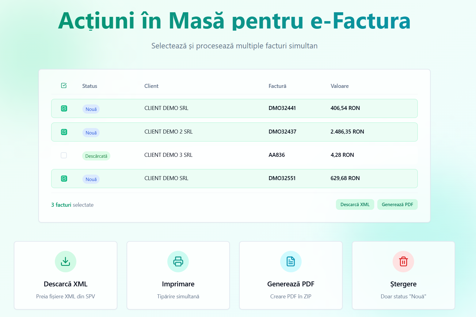 Optimizare: Acțiuni în Masă (Bulk) pentru e-Factura